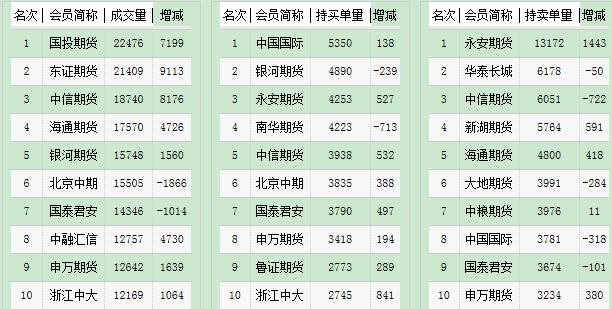 2.天膠1409合約主力成交量排名及持倉(cāng)量及變化情況:
