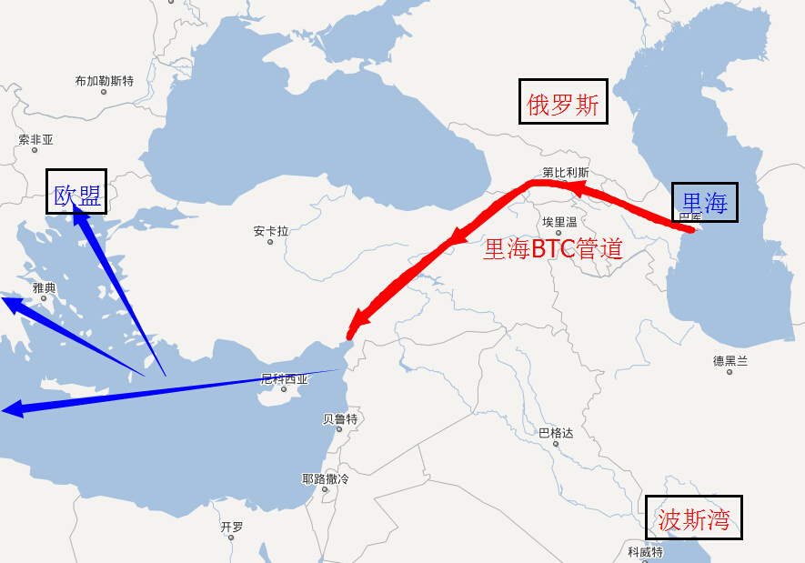 2.油氣進(jìn)口多元化,減少對于俄羅斯油氣資源的依賴,加大非洲幾內(nèi)亞灣地區(qū)的石油進(jìn)口,鋪設(shè)北非到意大利的海底管道,其中最幾年最大的成就當(dāng)屬連接里海,地中海的里海BTC石油管道,這條管道繞過了不穩(wěn)定的中東國家,及俄羅斯,使得里海豐富的能源可以通過阿塞拜疆,格魯吉亞,土耳其這幾個(gè)和歐盟關(guān)系相對友好的國家輸送能源。