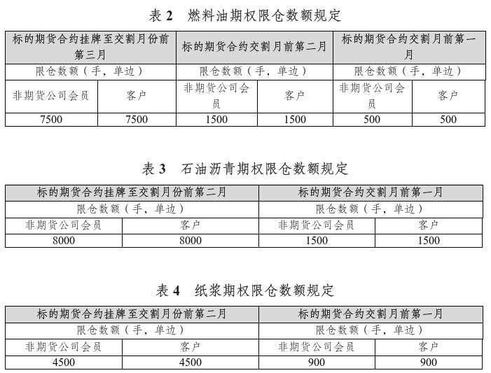 燃料油、石油瀝青和紙漿單個(gè)期權(quán)與對(duì)應(yīng)的標(biāo)的期貨共用獲批的套期保值交易持倉(cāng)額度。
