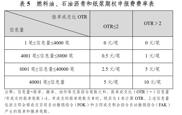 燃料油、石油瀝青和紙漿期權(quán)對(duì)客戶信息量收取申報(bào)費(fèi),各品種收取標(biāo)準(zhǔn)一致,如下表所示。