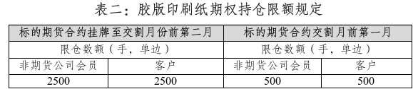 膠版印刷紙期權(quán)合約中,合約月份涉及的標的期貨持倉量閾值為5000手(單邊)。