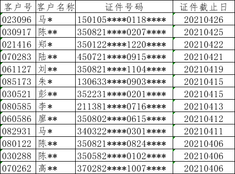 關(guān)于提醒2021年4月證件到期客戶更新身份證件的通知