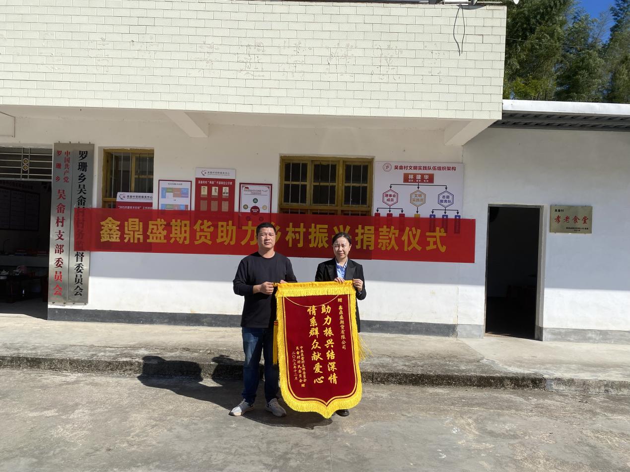 為表達(dá)感激之情,吳畬村“兩委”向鑫鼎盛期貨有限公司敬贈(zèng)了“助力振興結(jié)深情,情系群眾獻(xiàn)愛(ài)心”的錦旗。