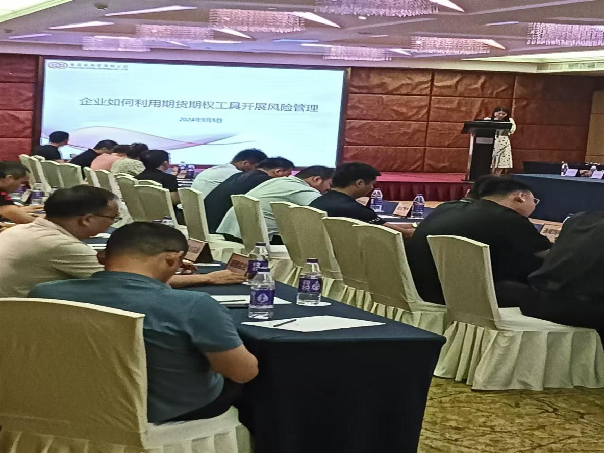 我司研究發(fā)展部研究員粟茸琳在會上發(fā)言,她的發(fā)言主題是:企業(yè)如何利用期貨期權(quán)工具開展風(fēng)險管理。