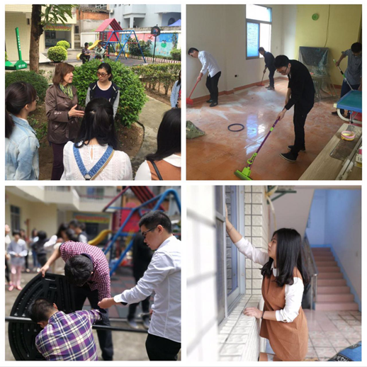 公司組織員工對(duì)康復(fù)中心校區(qū)進(jìn)行全面的打掃、整理;安裝熱水器、籃球架等較重生活設(shè)施。