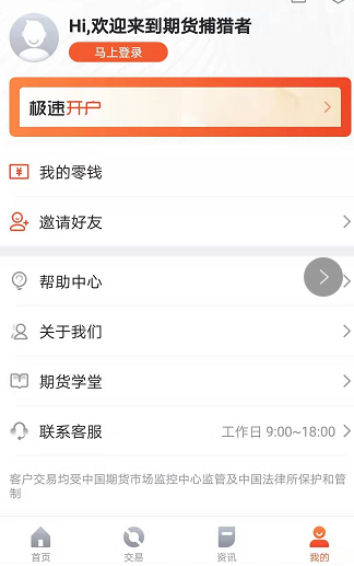 根據(jù)系統(tǒng)提示,下載安裝軟件,點(diǎn)擊:“我的”,再點(diǎn)擊“極速開(kāi)戶”,進(jìn)入開(kāi)戶界面。