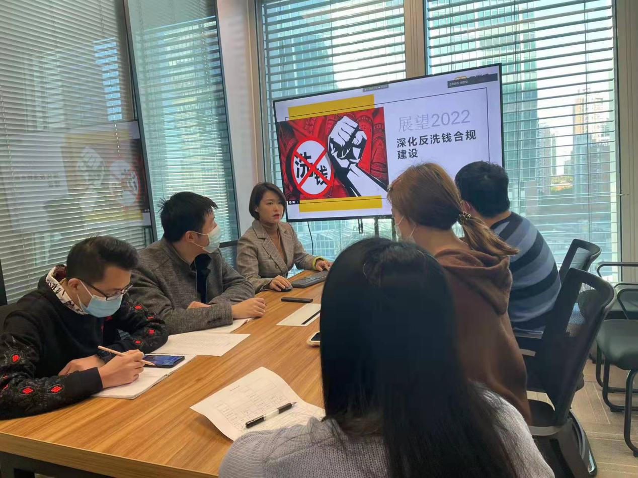 12月23日下午,公司總經(jīng)理胡瑩瑩召開了以“展望2022,深化反洗錢合規(guī)建設(shè)”為主題的反洗錢培訓會,全體員工參與了本次培訓會,會議采取直播形式,由首席風險官主持本次培訓會。