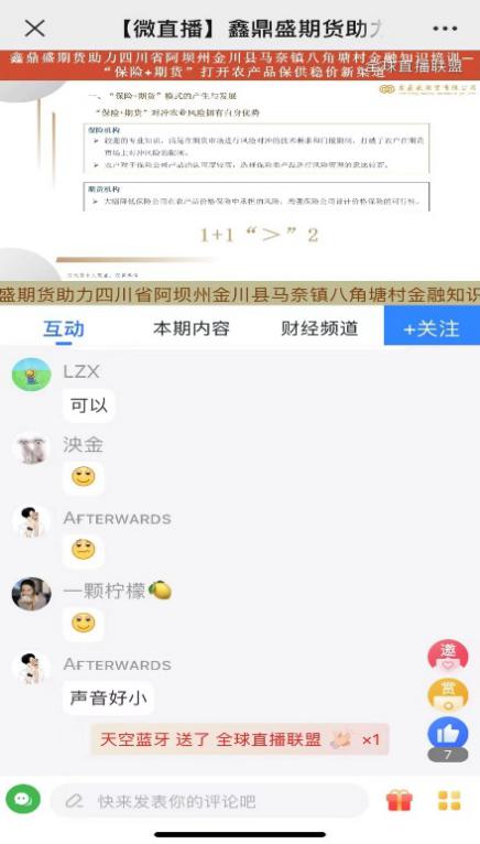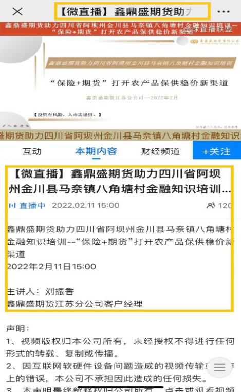 2022年2月11日,鑫鼎盛期貨有限公司江蘇分公司聯(lián)合馬奈鎮(zhèn)八角塘村政府組織開(kāi)展“‘保險(xiǎn)+期貨’打開(kāi)農(nóng)產(chǎn)品保供穩(wěn)價(jià)新渠道”金融知識(shí)專題培訓(xùn),為農(nóng)村地區(qū)管理干部、專業(yè)技術(shù)人員和廣大農(nóng)業(yè)經(jīng)營(yíng)主體普及專業(yè)技術(shù)知識(shí)、期貨市場(chǎng)基礎(chǔ)知識(shí)、“保險(xiǎn)+期貨”實(shí)際案例等內(nèi)容,有助于各類農(nóng)業(yè)經(jīng)營(yíng)主體認(rèn)識(shí)期貨和衍生品市場(chǎng)的風(fēng)險(xiǎn)管理功能,提高農(nóng)產(chǎn)品價(jià)格風(fēng)險(xiǎn)管理意識(shí)。