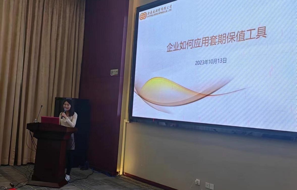 鑫鼎盛期貨有限公司研究發(fā)展部研究員粟茸琳,向參會企業(yè)代表講解了企業(yè)如何應用套期保值工具,為實體企業(yè)合理運用期貨工具規(guī)避現(xiàn)貨市場風險提供了幫助。