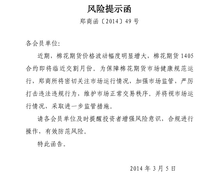 轉(zhuǎn)發(fā)鄭州商品交易所《風險提示函》
