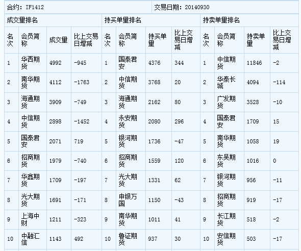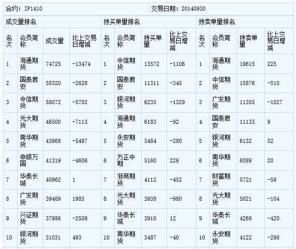 您的位置:首頁--持倉信息--國內(nèi)交易持倉報告股指期貨成交持倉龍虎榜09/30