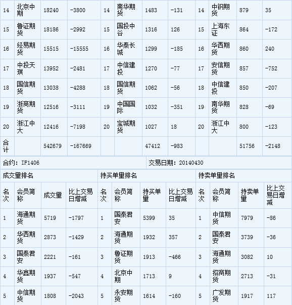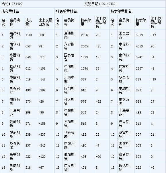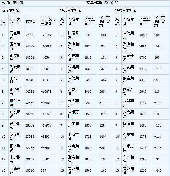 您的位置:首頁--持倉信息--國內(nèi)交易持倉報告股指期貨成交持倉龍虎榜04/30
