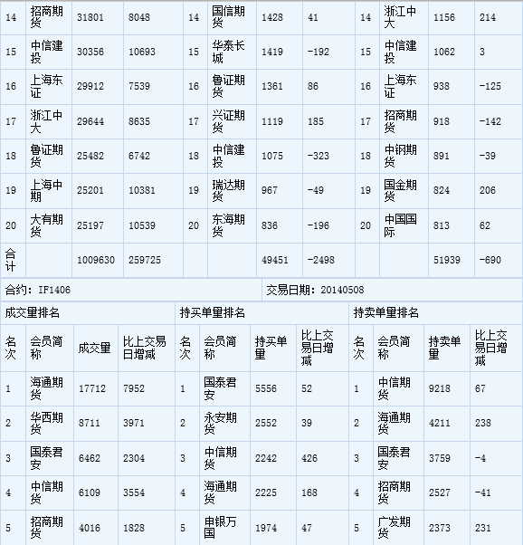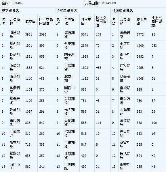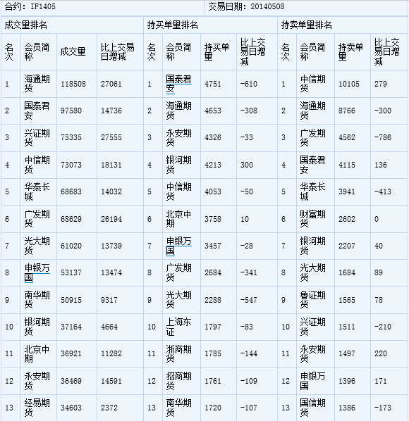 您的位置:首頁--持倉信息--國內(nèi)交易持倉報告股指期貨成交持倉龍虎榜05/08