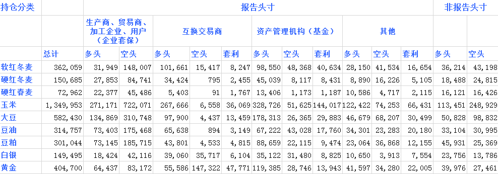 CFTC豆類及其產(chǎn)品持倉(cāng)情況