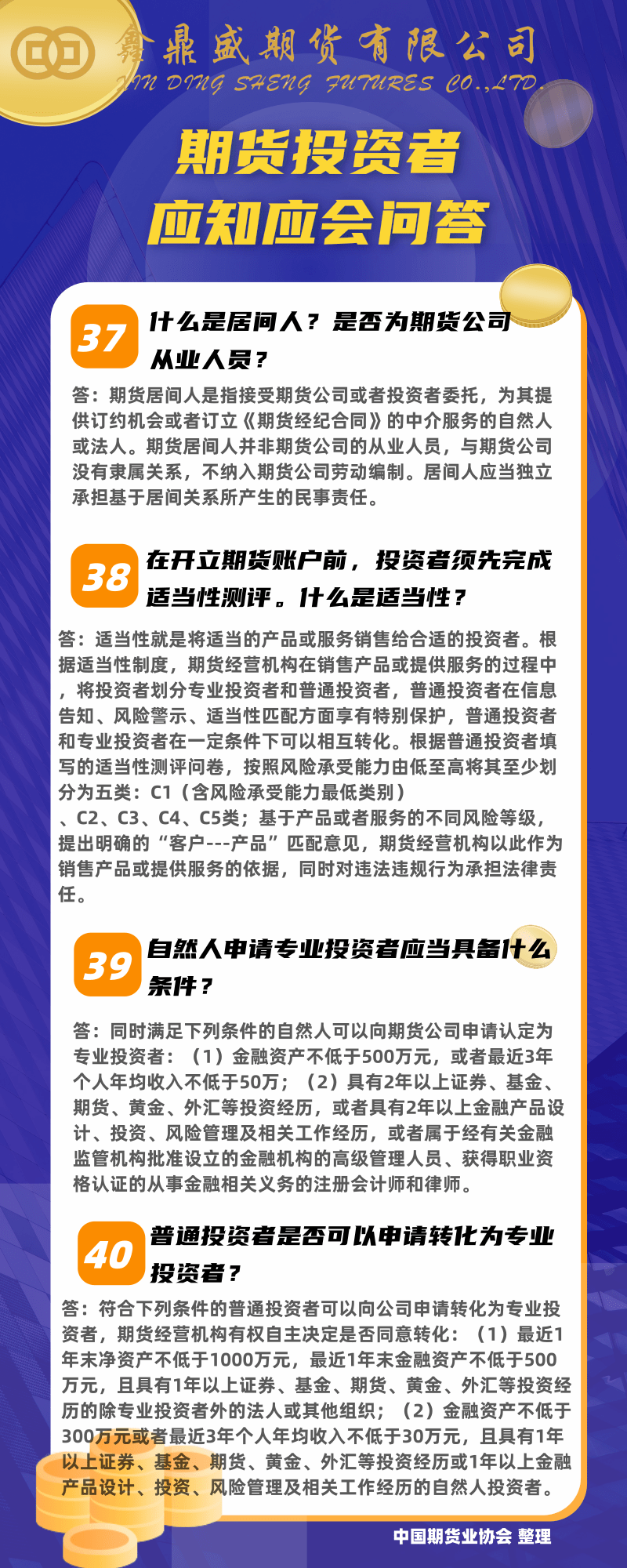 您的位置:首頁--投資者教育--防范非法證券期貨專欄期貨投資者應知應會問答(五)