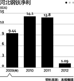 在國泰君安期貨研究員劉秋平看來,承鋼乃至河北鋼鐵還款難,都跟行業(yè)形勢密切相關(guān):鋼企今年1到2月份是虧損的,3月下旬略有盈利,4月份也還可以,“整個(gè)一季度有三分之二時(shí)間都在虧損,這幾個(gè)利潤貢獻(xiàn)是沒有的,河北鋼鐵也是這樣的情況”。