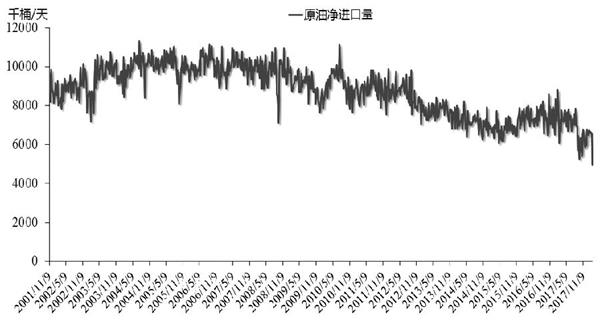 圖為美國原油凈進(jìn)口(單位:千桶/天)
